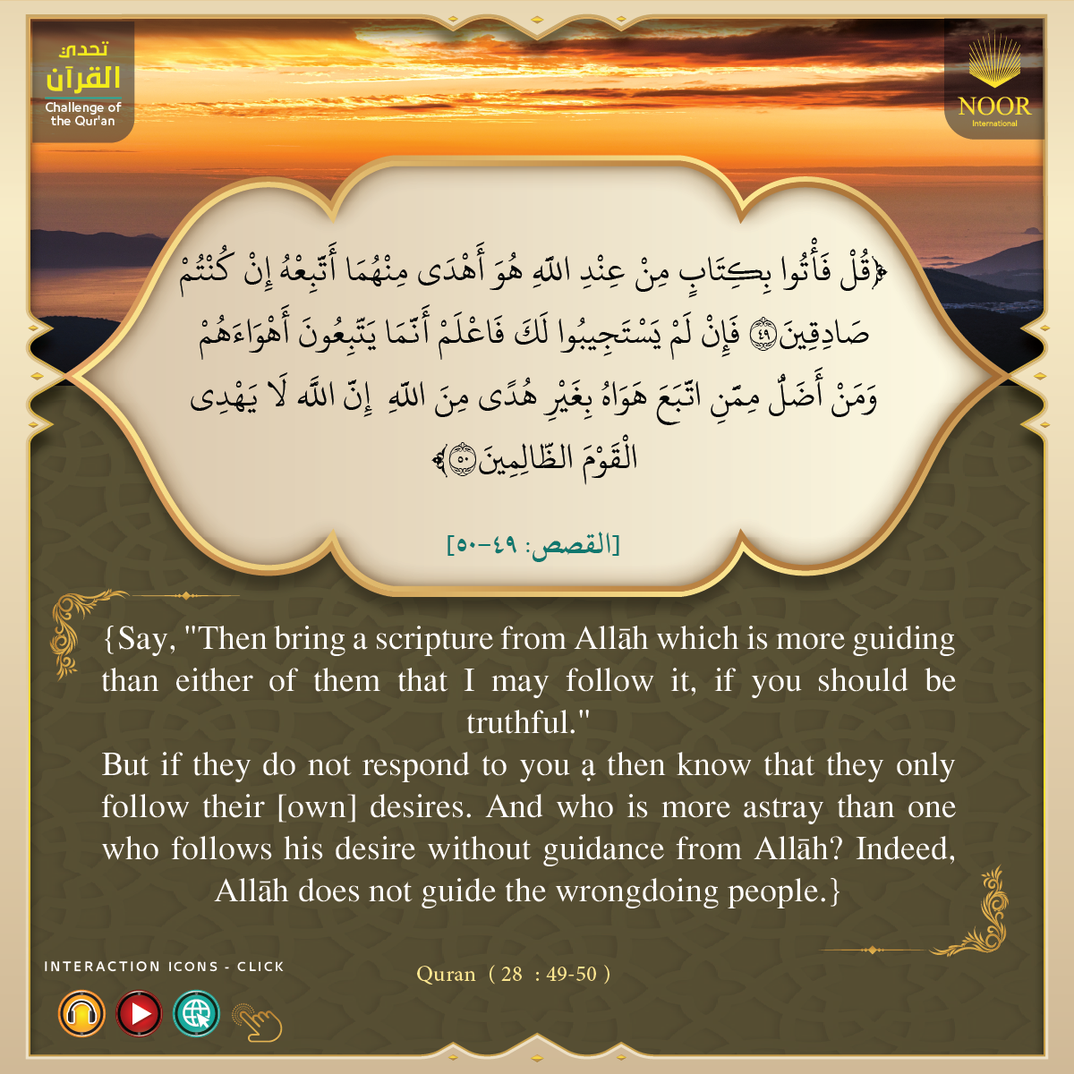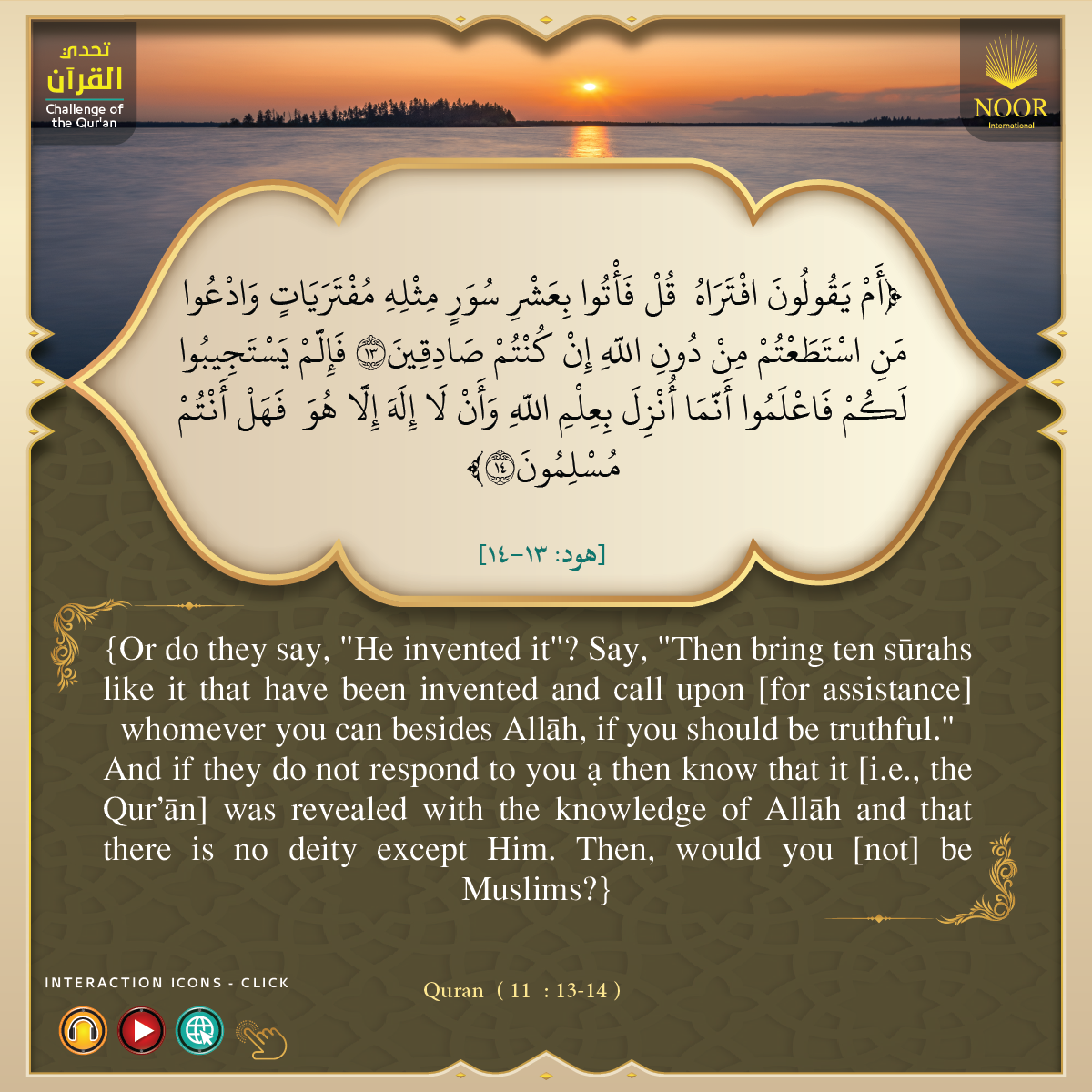 And if you are in doubt about what We have sent down [i.e., the QurÕŒn] upon Our Servant [i.e., Prophet Muúammad (p)], then produce a s´rah the like thereof and call upon your witnesses [i.e., supporters] other than AllŒh, if you should be truthful.